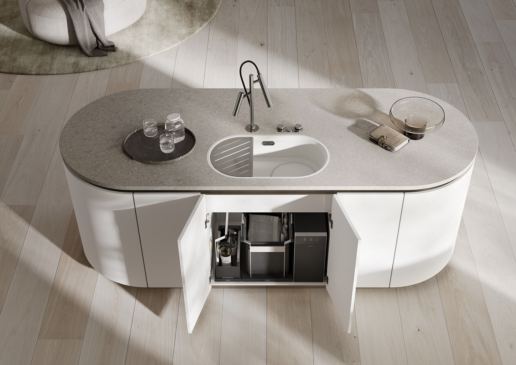 Im Mittelpunkt der Küche: der Wasserplatz. Trinken. Vorbereiten. Reinigen. Das alles ist in der BLANCO UNIT perfekt vereint. Die BLANCO UNIT ist eine Einheit am Wasserplatz. Sie macht das Leben leichter, rationeller und ist zudem stilvoll gestaltet. Integrieren Sie in Ihrer Küche eine in sich besondere, abgestimmte Lösung, die Sie im Alltag bei der Nutzung von Armatur, Spüle, Abfall- & Organisationssysteme optimal unterstützt. Entdecken Sie das umfassende BLANCO Sortiment sowie das einzigartige Konzept der BLANCO UNIT. Neu und besonders innovativ: das Wassersystem BLANCO CHOICE in Kombination mit der BLANCO UNIT-App.